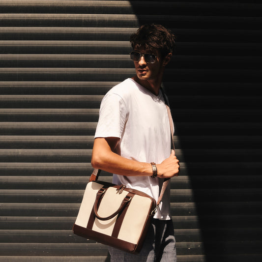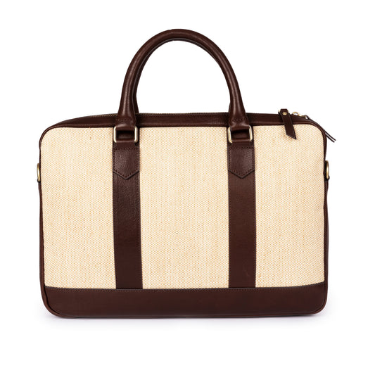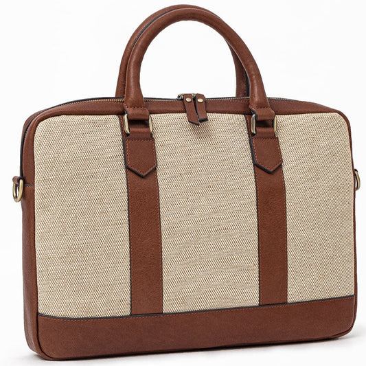 ELEGANT - Kahve | Deri & Keten Laptop / Evrak Çantası