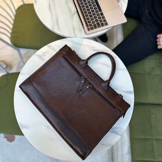 Founder - Kahve | Deri Laptop / Evrak Çantası