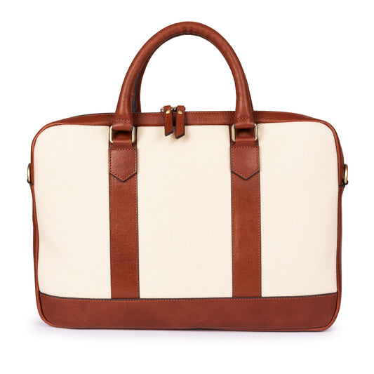 ELEGANT - Taba | Deri & Kanvas Laptop / Evrak Çantası
